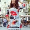 Comfortable dress with pockets and tie on the sleeves. Polish product. Made of pleasant to the touch warm material in a fashionable newspaper pattern. Sold without a belt. Brand numoco.