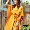 SOFIA Butterfly dress with belt in honey color. Brand numoco. Polish production.