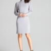 Grey fitted midi dress with long buffet sleeves. Creased turtleneck. Covered zip at the back.