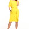 Midi dress made of cozy cotton knit with a wide boat neckline and 3/4 sleeves. The upper part of the dress has a kimono cut, the bottom has a pencil cut. Additionally decorative knitted belt in the color of the dress. The material is elastic. Our proposal for every day.