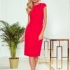 Tamara Elegant midi dress with belt and short sleeves. Dress in red. Made of thicker – pleasant to the touch, slightly flexible material without lining. Fastened at the back with a covered zipper. Numoco brand. Polish product.