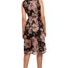 Elegant dress in ribbed chiffon with a floral pattern. A deep neckline and decorative patch belt make it sure to impress on many occasions. Dress has a concealed zipper and lining.