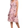 Elegant dress in ribbed chiffon with a floral pattern. A deep neckline and decorative patch belt make it sure to impress on many occasions. Dress has a concealed zipper and lining.