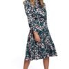 A dress for admirers of romanticism and timeless elegance. Flared, airy cut with a stand-up collar and tie at the waist, with a beautiful slit on the back that subtly reveals it. The contrasting pattern makes it stand out and makes it a dress for special occasions! Dress has a concealed zip fastening.