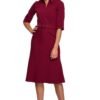 Classic, smooth fabric, a strongly marked waist with a belt with a covered buckle and a collar emphasize the elegance of the design. A subtle neckline with a covered zipper makes it possible to change the character of the dress with one move. Very stylish!
