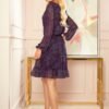 Airy chiffon dress with ruffles, neckline and elastic waistband and lining. Pink and blue mandalas on a dark background. Brand numoco. Polish production.