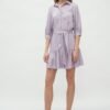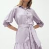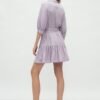 A lilac dress with a frill is a model which will add charm to each of you! Thanks to the binding it emphasizes the waist and lengthens the legs. Buffy sleeves give it a casual character. Universal cut of the dress will go well with any styling. Change accessories: a jacket for a ramonet, stilettos for boots and you will look stunning every time. An additional advantage is the material from which the dress is made. It will let you feel comfortable all day long!