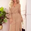 A sweater envelope dress with a tie. Made of pleasant to the touch beige material. Brand numoco. Polish production.