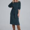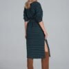 Warm winter midi dress, half round neckline, long sleeves, straight cut. Tied at the waist, slits at the sides.