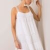 Strapless dress with a casual cut. Front with decorative insets of lace. Back smooth. Ideal for summer.