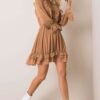 Long sleeve dress with lining. Neckline with frills, lace and binding. Bottom of dress flared with frills. Ideal for many occasions.