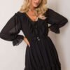 Long sleeve dress with lining. Neckline with frills, lace and binding. Bottom of dress flared with frills. Ideal for many occasions.