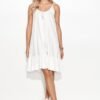 Summer dress made of pleasant to the touch sweatshirt knit. The dress has thin shoulder straps finished with a romantic tie. Girlish style of the dress is complemented by a frill sewn into its lower part. The dress is very comfortable and casual. It can be worn loose, tied with a belt, thong or summer scarf. Wear it with fashionable cowboy boots or your favorite sports shoes. The dress will look great either way. So wear it how you like and feel. Fashion is all about expressing yourself.