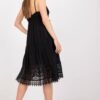 Summer dress with a flared cut on shoulder straps. Dress is lined, with a heart neckline. Dress with decorative lace and openwork pattern.
