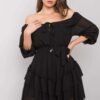Spanish style dress with 3/4 sleeves. Dress with decorative frills, tie at waist and neckline. Ideal for many occasions.
