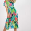 Summer dress with short sleeves, has a lining. Dress with a flared cut, plus a belt. Ideal for many occasions.