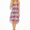 Loose trapeze dress with neckline and belt. Dress in blue and pink mandala fabric. Brand numoco. Polish production.