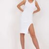 Pencil dress in a fitted cut with shoulder straps, a small neckline. Interesting slit at the bottom. Dress is made of stretchy material. Ideal for many occasions.