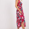 Summer dress with wide straps made of floral fabric. The top of the dress with supportive elastics, the bottom slightly flared with a frill.