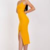 Summer dress made of ribbed fabric, with straps. Pencil cut dress with decorative buttons on the front.