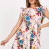 Summer dress with short sleeves in the form of a frill. The dress is made of floral fabric, the bottom is flared with a frill.