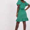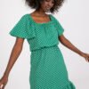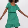 Cotton dress with short sleeves in the form of a ruffle. Dress with a Spanish-style neckline. Decorative frill at the bottom.