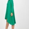 Long-sleeved, button-down shirt dress. The bottom of the shirt asymmetrical. A proposition for everyday and beyond.