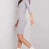 Dress in a fitted pencil cut with 3/4 sleeves and a heart neckline.