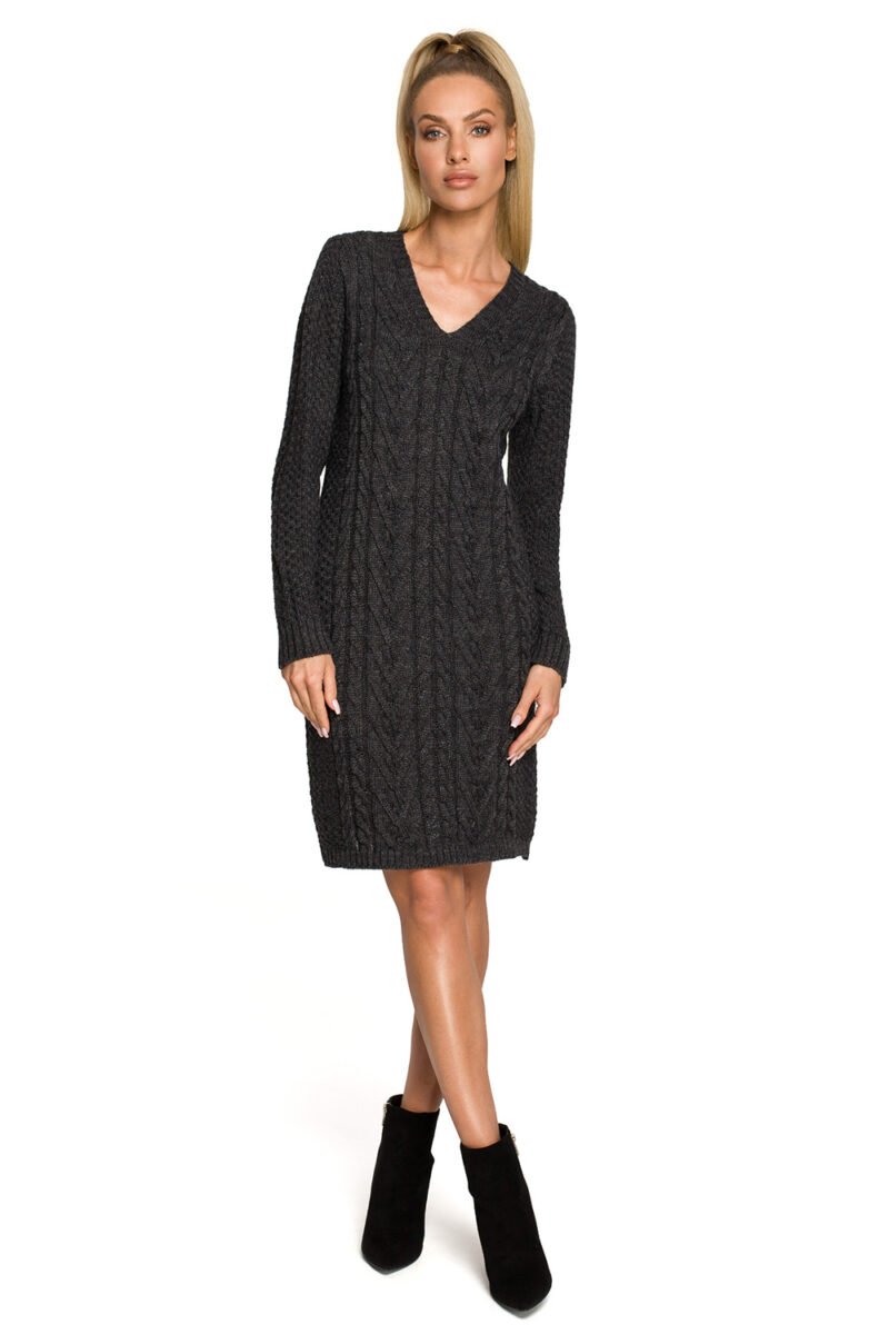 For cold days and evenings, a knitted dress with a plaid weave, warm and elegant. The dress is tucked in over the head.