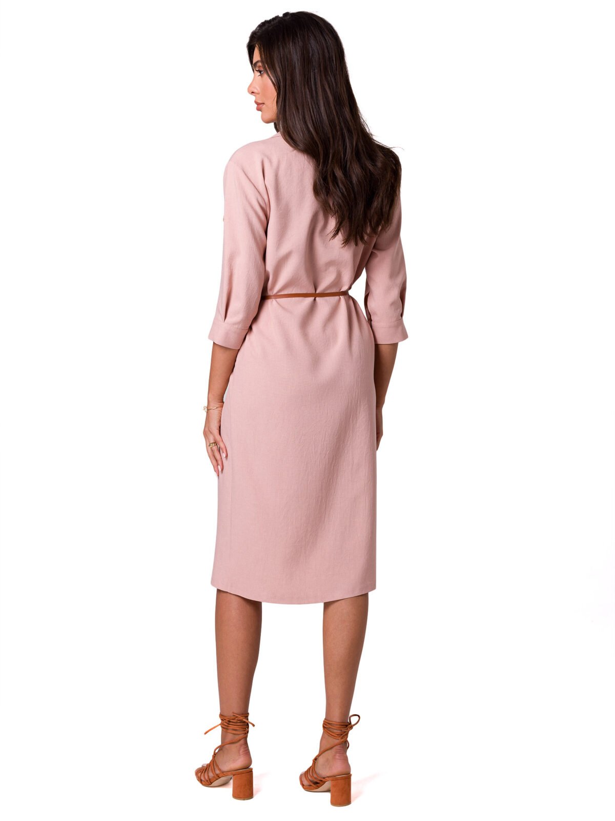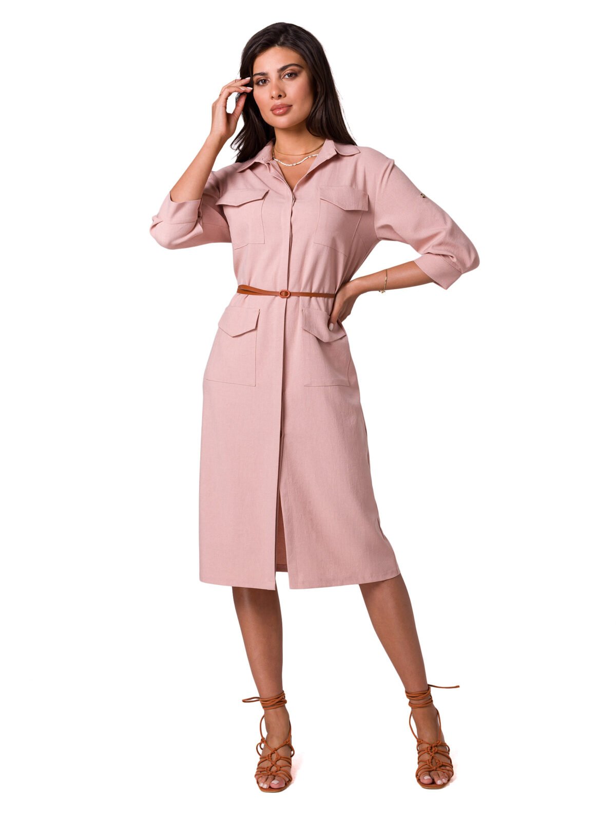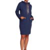 Comfortable casual dress with a high collar, decorative leopard-print ribbons, hood and pockets hidden in the seams running down the front. The body-friendly knit fabric will provide a feeling of warmth and comfort.