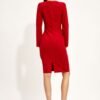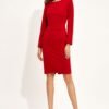 Classic dress that is synonymous with elegance, broken with red. If you want to wear something elegant and subdued for going out, then this model will appeal to you. Pencil dress of universal length to the knees. Long sleeves add some charm to it, and the embellishment at the waist emphasizes the figure.