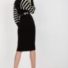 Knit dress with long sleeves and a heart neckline. Pencil cut dress with a belt to complete the look.