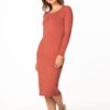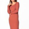 Long, fitted and simple cotton knit dress with a boat neckline and long sleeves.