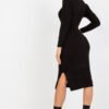 Dress with long sleeves, tucked in over the head. The dress is made of knitted fabric woven into a decorative braid.