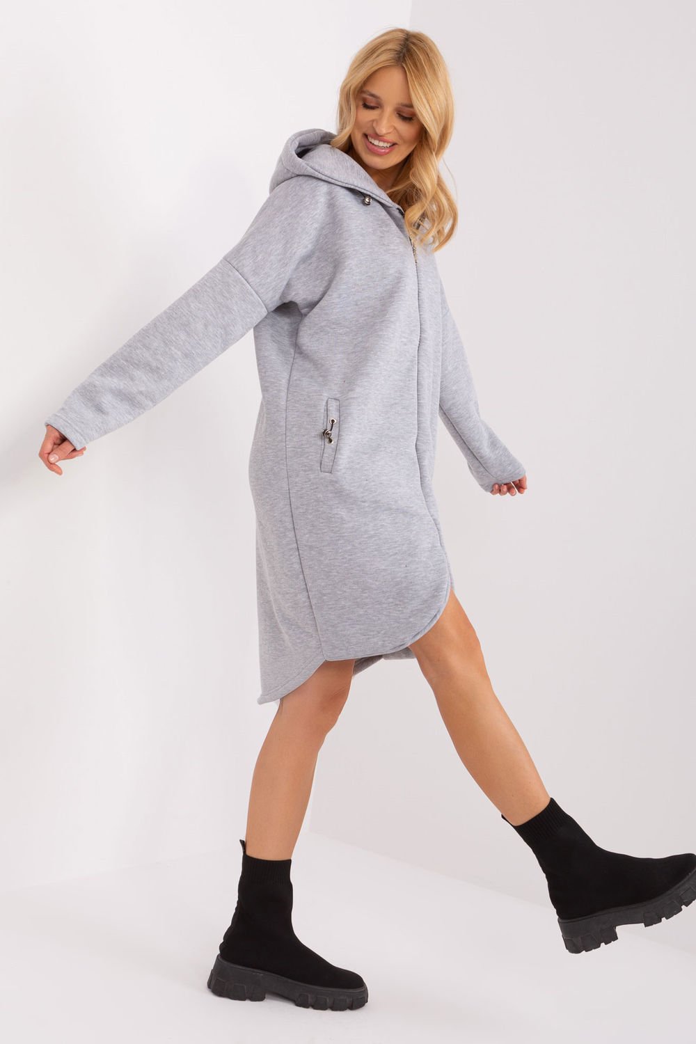Tracksuit dress with long sleeves and a round neckline. There are slip pockets on the front.