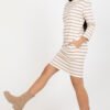 Striped cotton dress with long sleeves and a round neckline. Slip pockets on the sides.