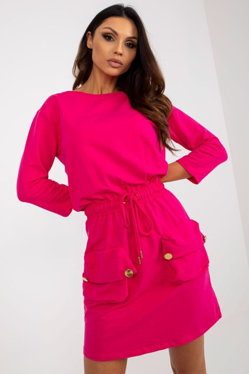 Tracksuit dress with 3/4 sleeves and round neckline. Dress with tie straps and pockets.