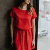 Dress with short sleeves, elastic waistband and double-layered slightly flared bottom. Complete with a belt in the same color.