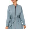 This multifunctional zippered sweatshirt with fashionable cutouts and lacing on the back can serve equally well as a tunic or dress for leggings. Dress with pockets on the sides.