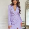 Classic navy dress, extremely tasteful and chic. Suitable for various events as well as elegant outings. Loose-fitting top with a v-neckline, straight hem. The dress is fastened with a covered zipper. The creation comes with a belt, which completes the whole.