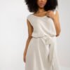 Sleeveless summer dress with a slightly flared cut. Dress with a v-neckline, with a tie at the waist.