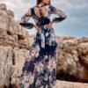 A fashionable dress that has a great cut and maxi length. A dress that you can confidently wear all year round. Very pleasant, airy and delicate to the touch material, it will work well for all kinds of figures. The dress is characterized by a safe maxi length and has a beautiful flowing cut, on which we placed a patterned motif. A delicate tapering at the waist, an interleaved neckline and a slit that will slenderize your legs – the whole thing will mysteriously enhance your charms. The dress with long buffeted sleeves has a cutout on the back with binding and a zipper closure. This model is lined with a petticoat. The dress is distinguished by the rich availability of color variations. Thanks to her, you will undoubtedly stand out from the crowd and feel very feminine. Its length and insane combination of colors will make you the star of every evening. Excellent for formal outings, it will be the perfect dress for a wedding. The product is made and sewn in Poland.