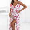 Opt for individuality and femininity with a new version of our bestselling chiffon dress! Flowers is sewn from delicate, lightweight chiffon in beautiful flowers. We worked on its cut for a long time, that’s why it fits the figure so perfectly, and the numerous ruffles look spectacular when you move. Thin adjustable straps and an envelope neckline captivatingly expose the neck, collarbones and shoulders. The elastic waistband makes the dress wear perfectly, and the whole silhouette gains proper proportions. The bottom with asymmetrical ruffles slenderizes the legs. The dress is designed and sewn in Poland.