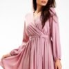 Mini length dress with long sleeves, finished with an elastic band. There is an elastic sewn into the waist, slightly widened hem. It comes with a belt sewn from the same color and material. It will go great with stilettos for various celebrations, as well as with sneakers for everyday wear. Designed and sewn in Poland.