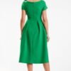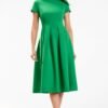 Midi dress with short sleeves. Boat neckline. Fastened at the back with a covered zipper. The dress beautifully shapes the figure and emphasizes assets while masking weaknesses. Designed and sewn in Poland.