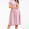 Midi dress with short sleeves. Boat neckline. Fastened at the back with a covered zipper. The dress beautifully shapes the figure and emphasizes assets while masking weaknesses. Designed and sewn in Poland.
