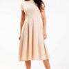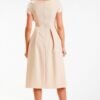 Midi dress with short sleeves. Boat neckline. Fastened at the back with a covered zipper. The dress beautifully shapes the figure and emphasizes assets while masking weaknesses. Designed and sewn in Poland.