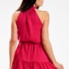 Loose, flared dress with decorative neckline crease. The collar fastens at the back with a button. Can be worn two ways, as an airy A-line dress, or tied at the waist with a belt made of the same material as the dress. Designed and sewn in Poland.