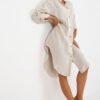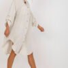 Shirt-cut, button-down dress with long sleeves. Sleeves with the option of folding up. The bottom of the dress is finished with a semicircular hem. Two pockets on the front.