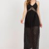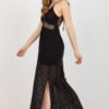 A strapless openwork dress with a back tie and a sweetheart neckline. The dress has padded cups and a lining.